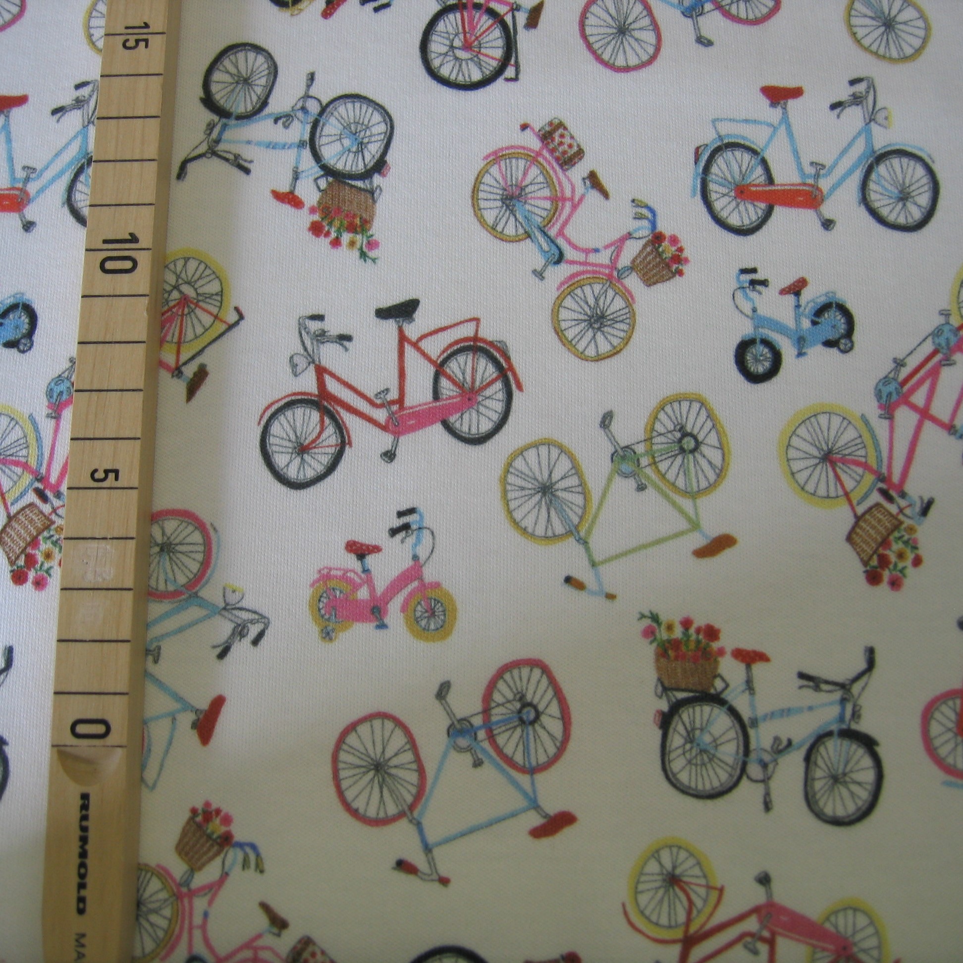 Jersey Interlock-Jersey weiß mit bunten Fahrrädern